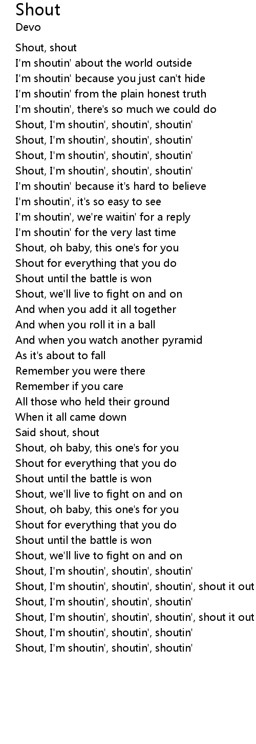Shout, I'm shoutin', shoutin', shoutin', shout it out |