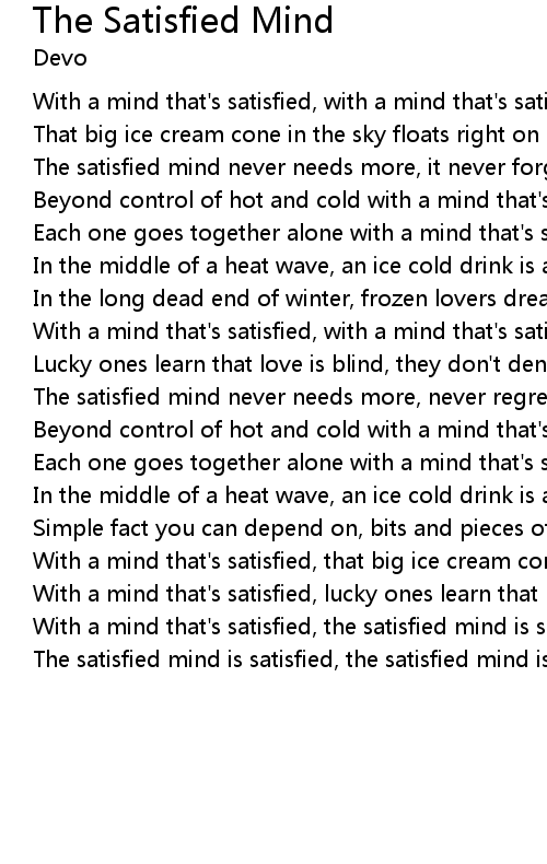 With a mind that's satisfied, the satisfied mind is satisfied |
