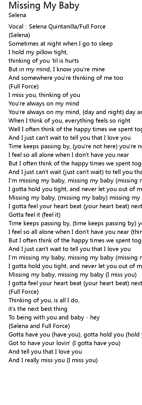 | Missing my baby, (missing my baby) missing my baby (I miss you) | |