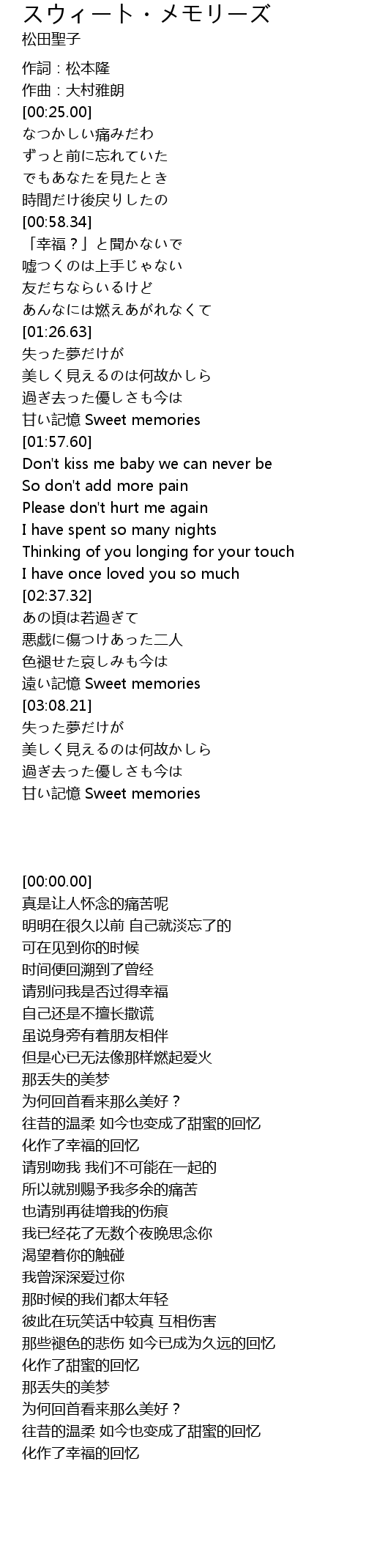 | [02:59.68] | 遠い記憶 Sweet memories |