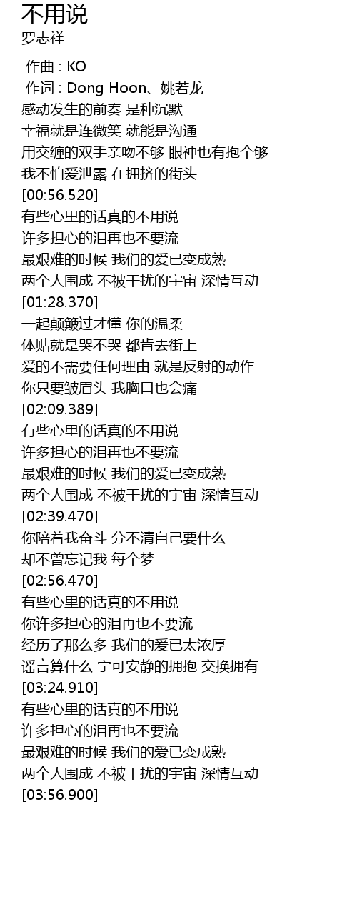 | [00:01.00] | 作词 : Dong Hoon、姚若龙 |