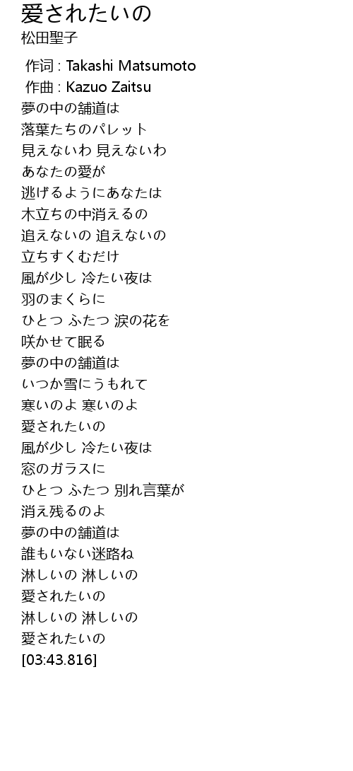 | [03:34.676] | 愛されたいの |