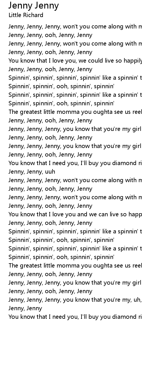 Jenny, Jenny, ooh, Jenny, Jenny |