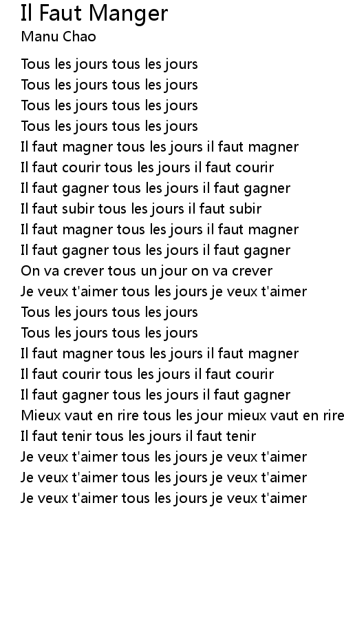 Je veux t'aimer tous les jours je veux t'aimer |