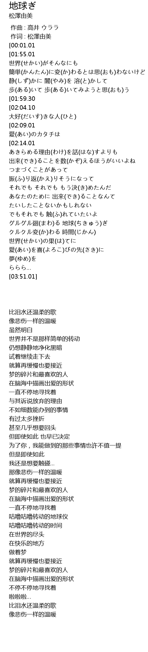| [02:37.30] | グルグル廻(まわ)る 地球(ちきゅう)ぎ |