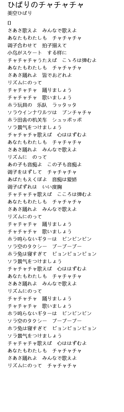 | チャチャチャ歌えば 心ははずむよ | |