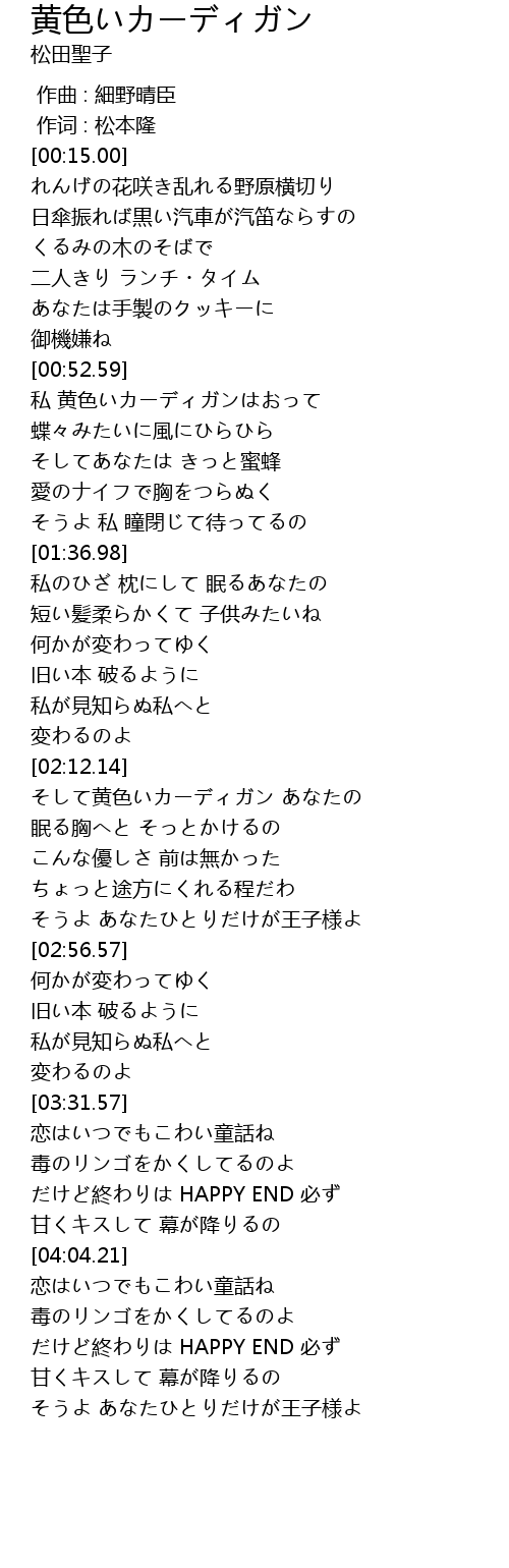 | [02:15.28] | そして黄色いカーディガン あなたの |
