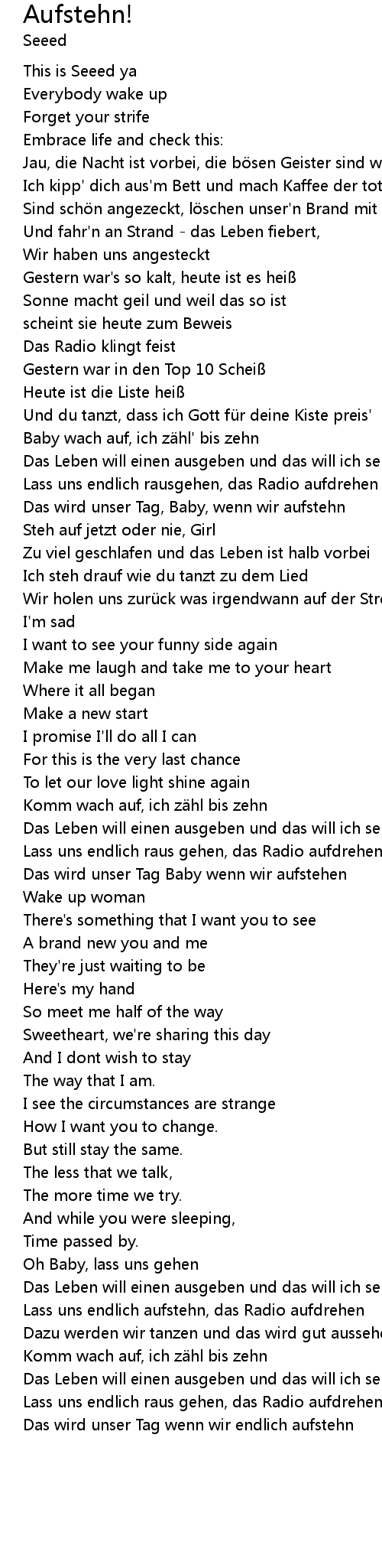 | Lass uns endlich aufstehn, das Radio aufdrehen | |