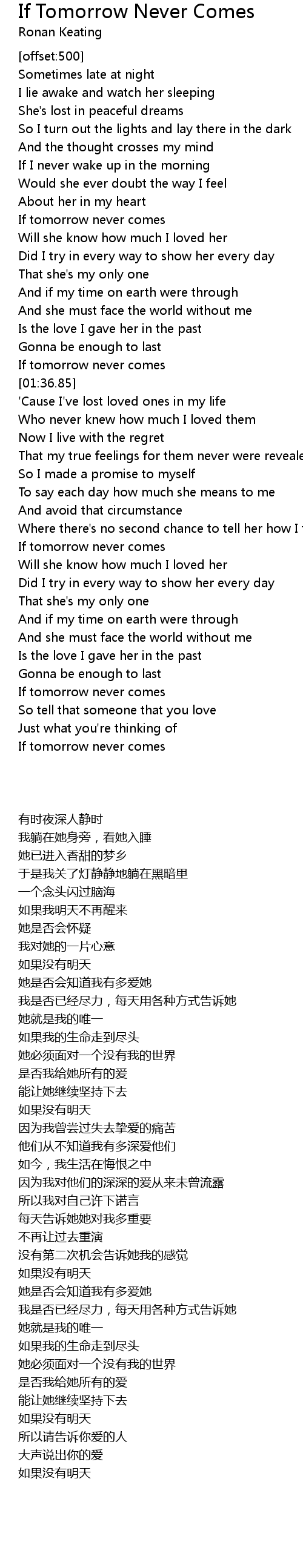 If tomorrow never comes |