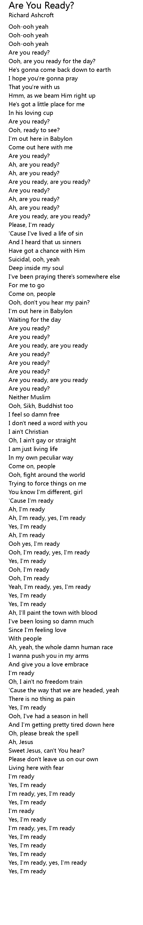 Ooh, I'm ready, yes, I'm ready |