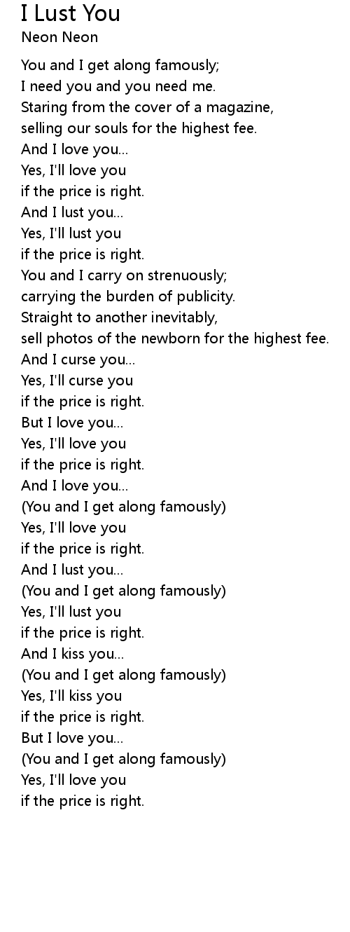 I Lust You Lyrics