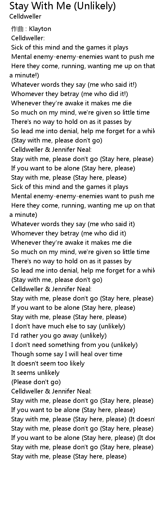 | [02:05.313] | Stay with me, please don' t go |