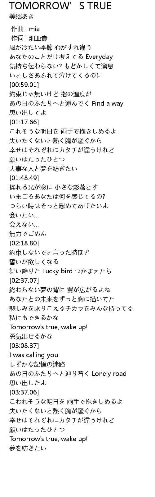 | [03:02.16] | Tomorrow' s true, wake up! |