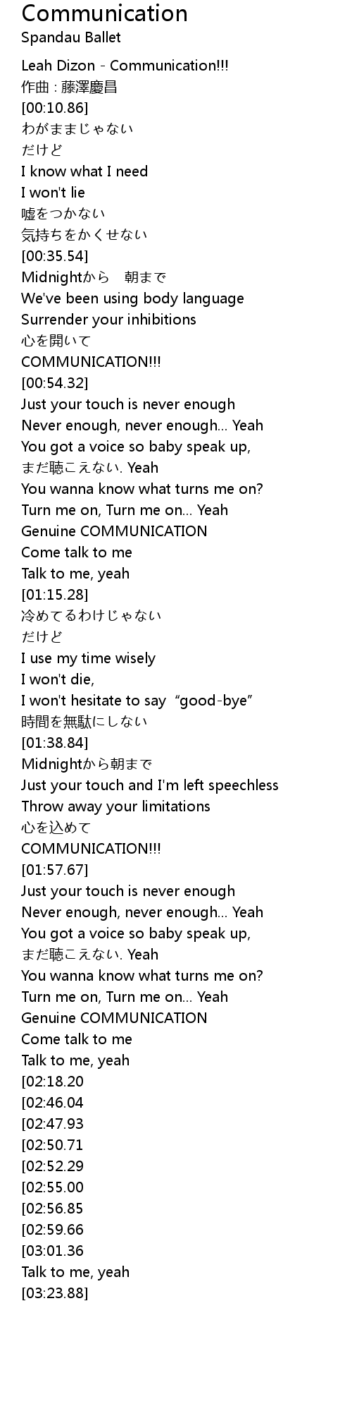 | [00:01.86] | Leah Dizon - Communication!!! |
