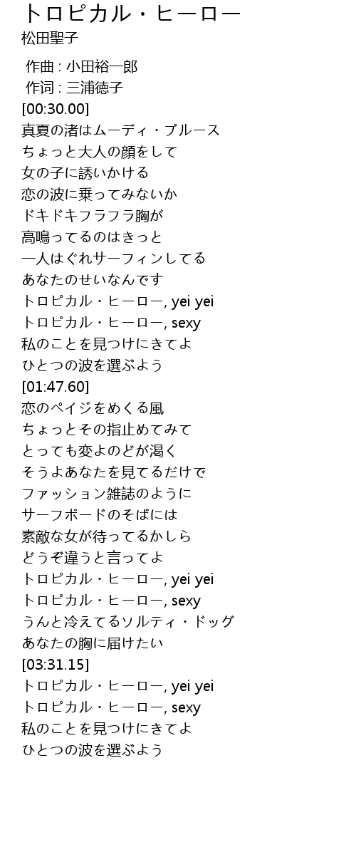 | [01:30.69] | トロピカル・ヒーロー, sexy |