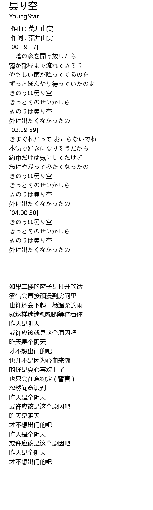 | [00:00.00] | zuò qǔ : huāng jǐng yóu shí |