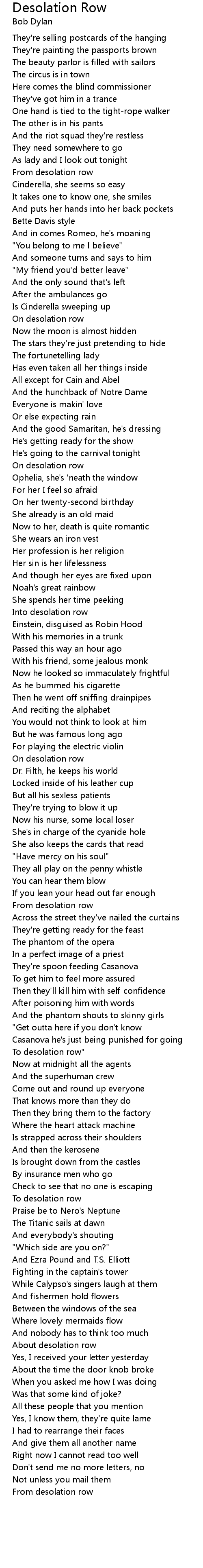 About desolation row |