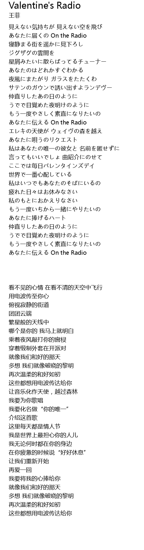 | [02:18.950] | 私はあなたの唯一の彼女と 名前を匿せずに |