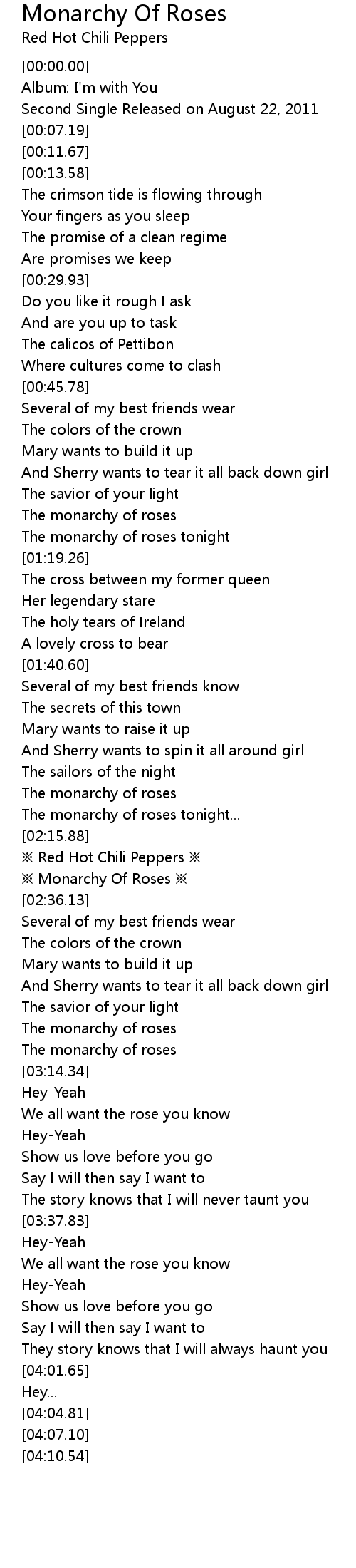 | [02:20.77] | ※ Red Hot Chili Peppers ※ |