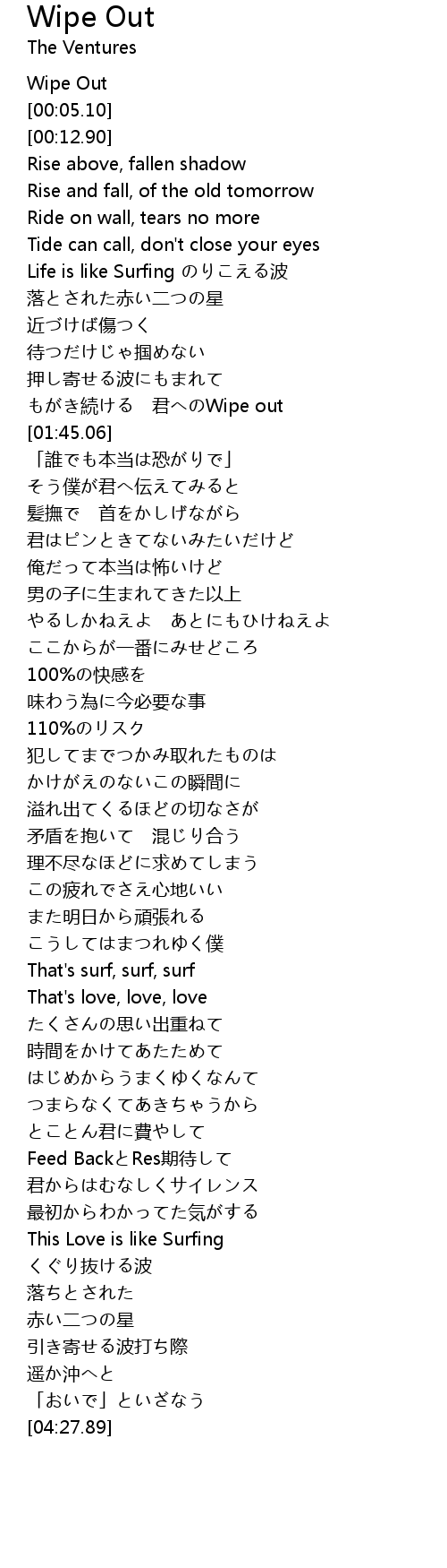 | [01:35.07] | もがき続ける 君へのWipe out |