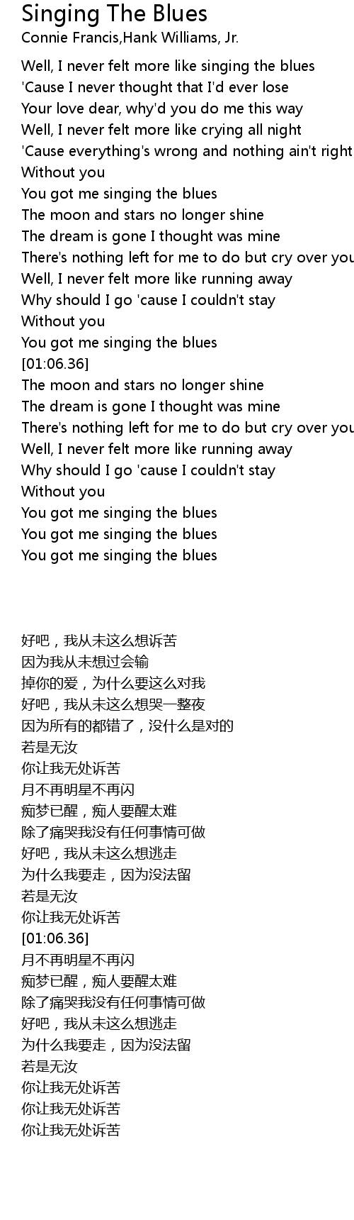 Well, I never felt more like singing the blues |