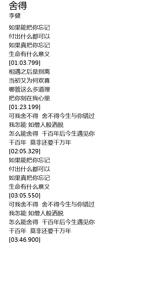 | [03:07.740] | 可我舍不得 舍不得今生与你错过 |