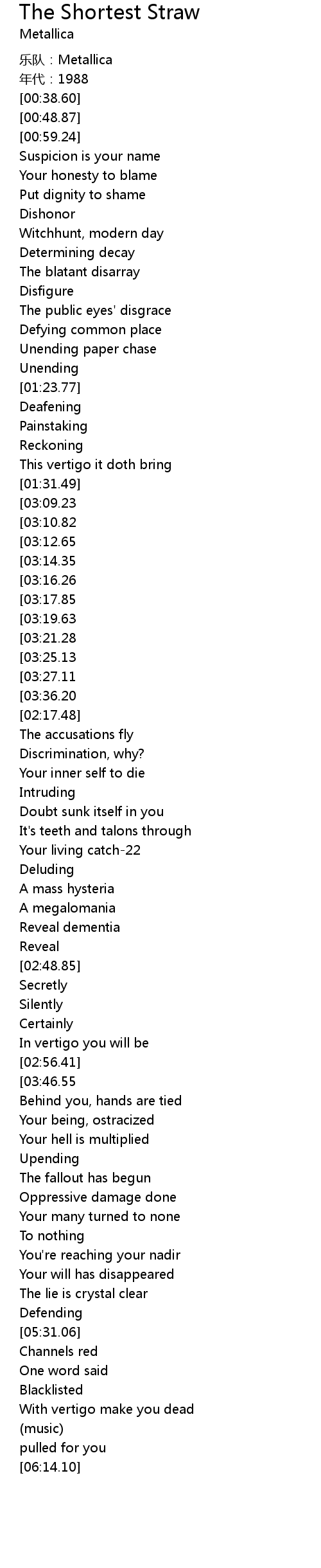 | [00:14.01] | 乐队:Metallica |