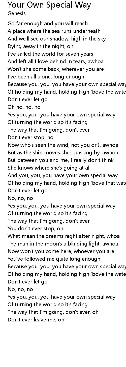 Because you, you, you have your own special way |