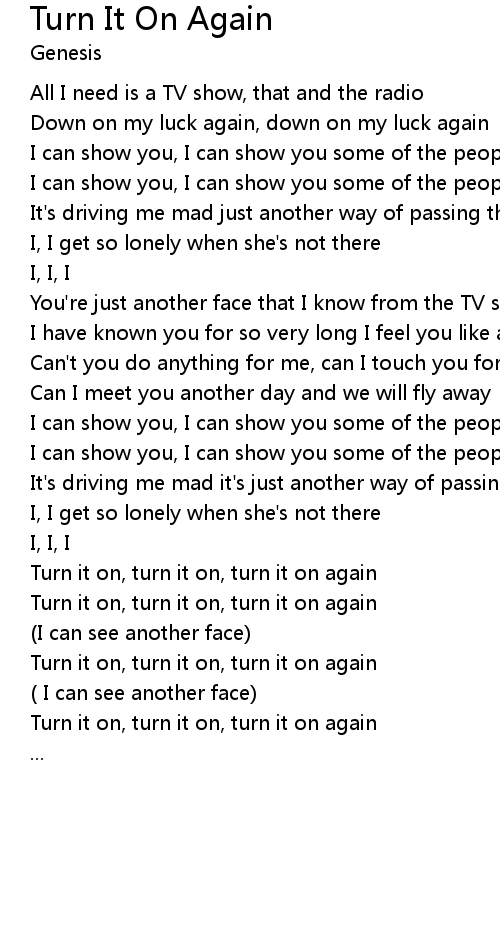 Turn it on, turn it on, turn it on again |