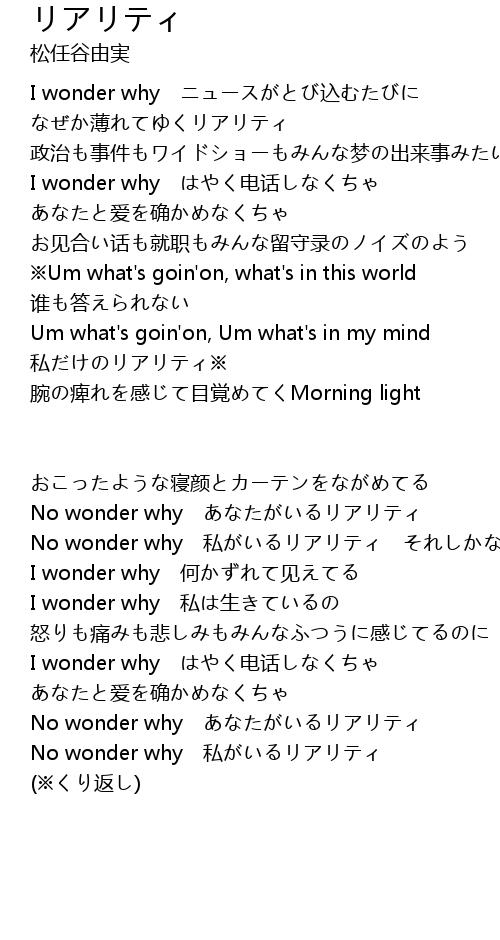 | No wonder why 私がいるリアリティ それしかなくても | |