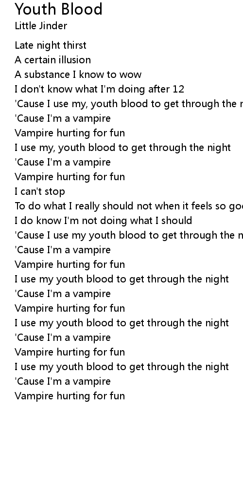 'Cause I use my, youth blood to get through the night |