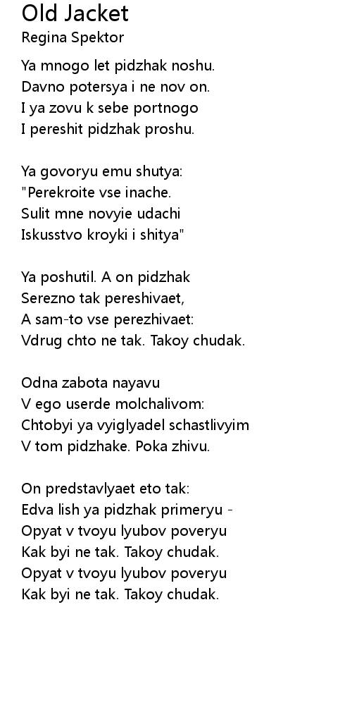V tom pidzhake. Poka zhivu. |