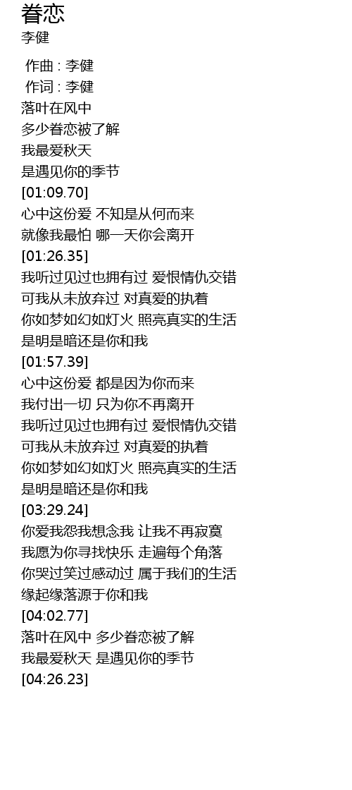 | [04:16.56] | 我最爱秋天 是遇见你的季节 |