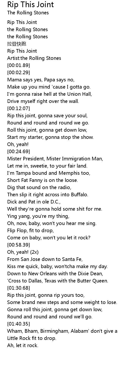 | [01:40.85] | Wham, Bham, Birmingham, Alabam' don' t give a damn. |