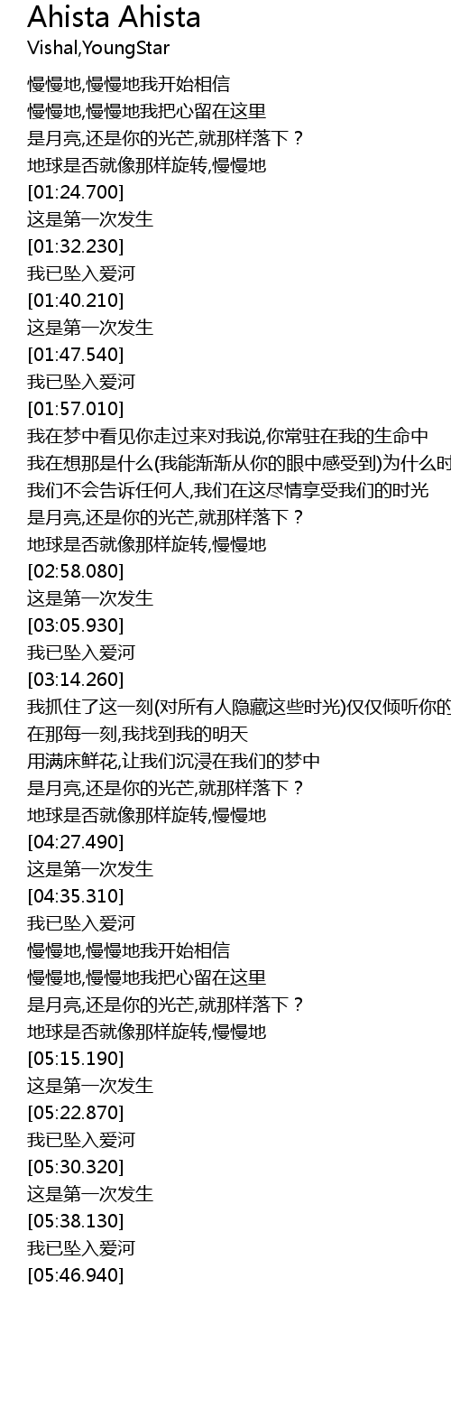 | [04:44.030] | màn màn dì, màn màn dì wǒ kāi shǐ xiāng xìn |