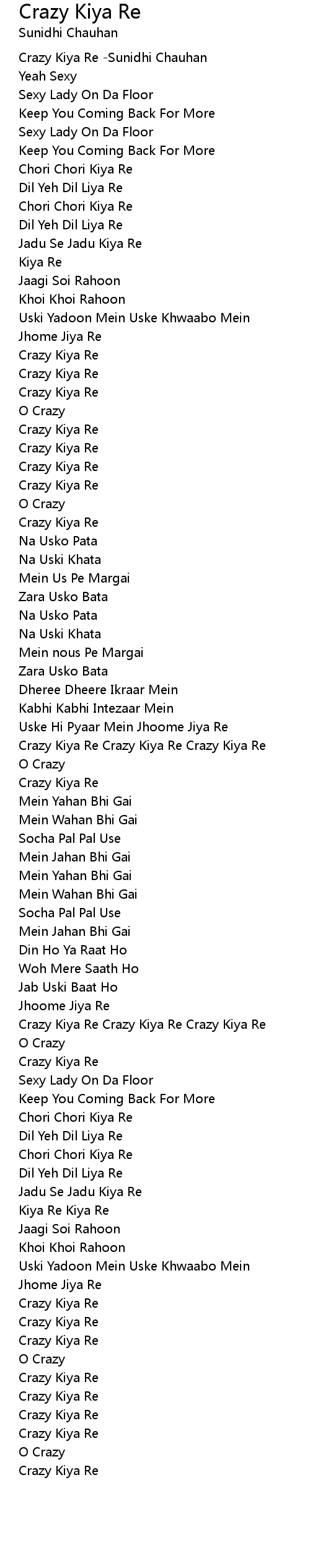 Crazy Kiya Re Crazy Kiya Re Crazy Kiya Re |