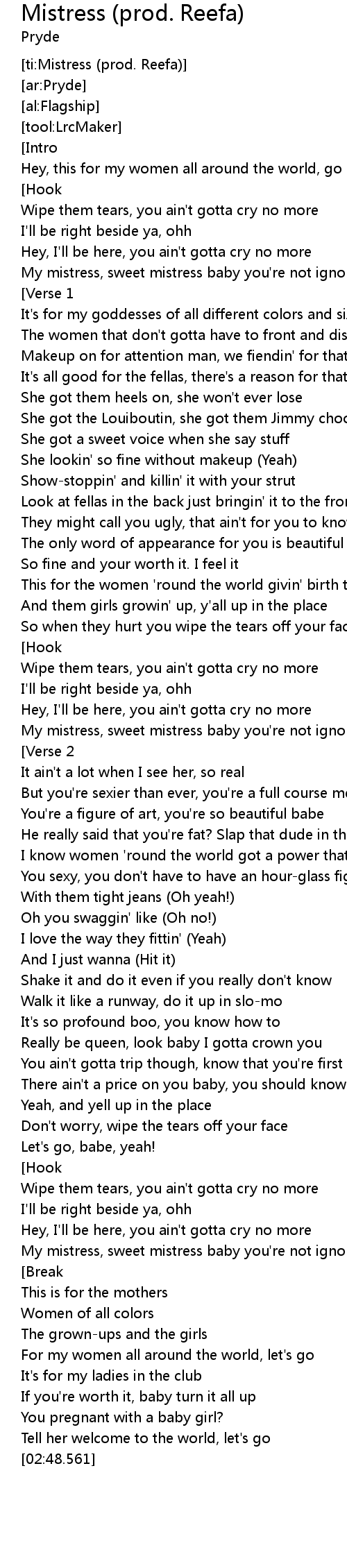 | [ti:Mistress (prod. Reefa)] | |