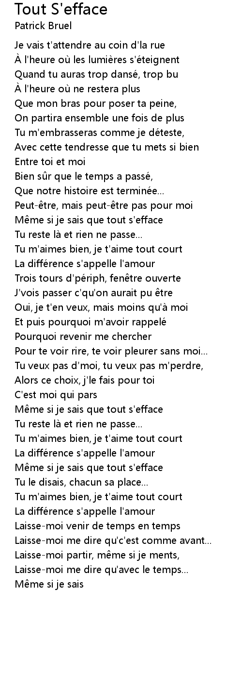 | Pour te voir rire, te voir pleurer sans moi... | |