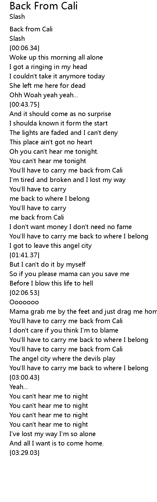 You'll have to carry me back from Cali |