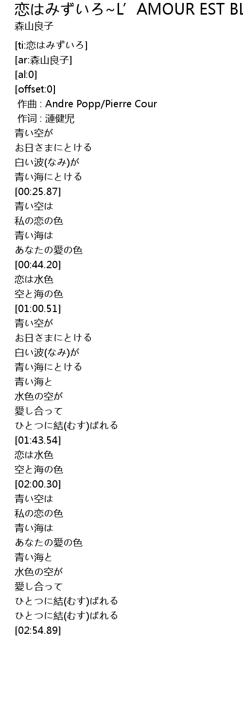 | Song | 恋はみずいろ~L’AMOUR EST BLEU |