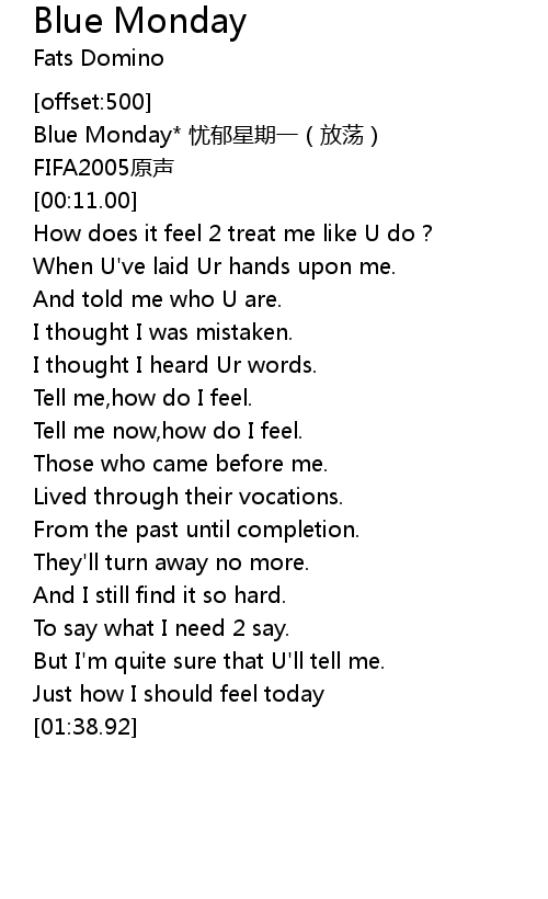 | [00:10.00] | Blue Monday* 忧郁星期一(放荡) |