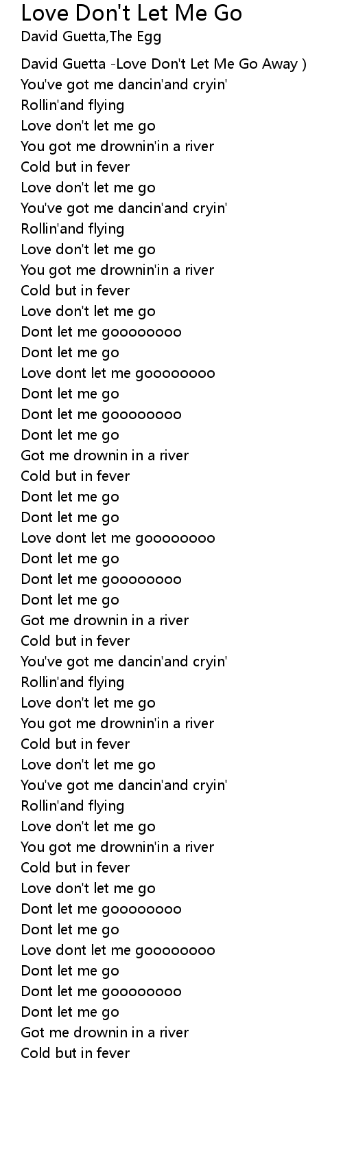 | [00:00.471] | David Guetta Love Don' t Let Me Go Away |