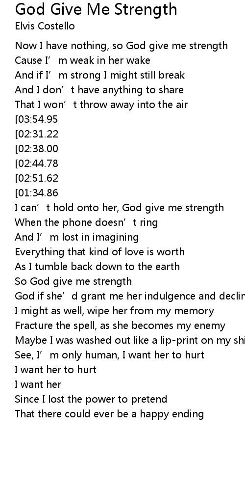 | [04:51.42][01:34.86] | So God give me strength, God give me strength |