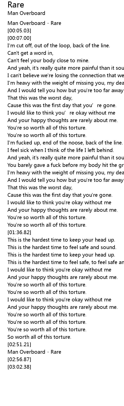 | [00:52.98] | I'm fucked up, end of the noose, back of the line. |