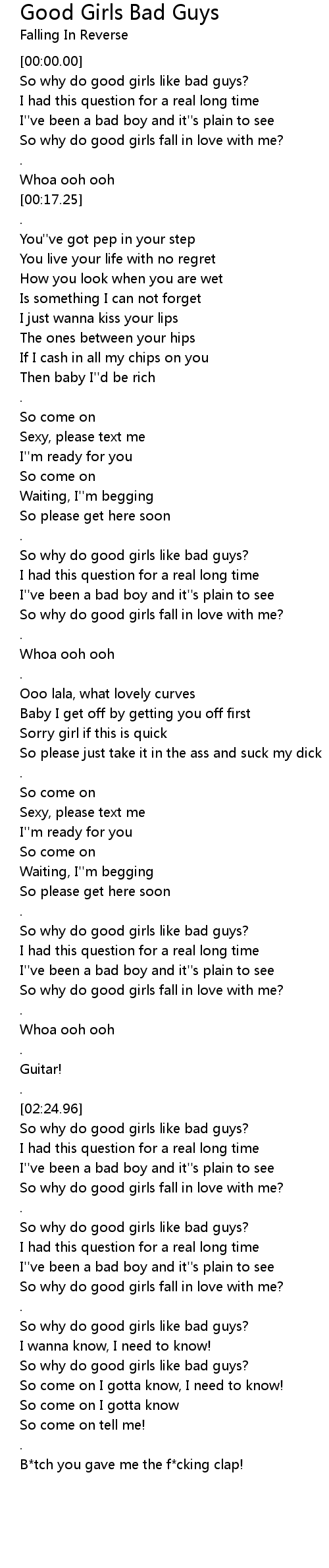 So why do good girls fall in love with me? |