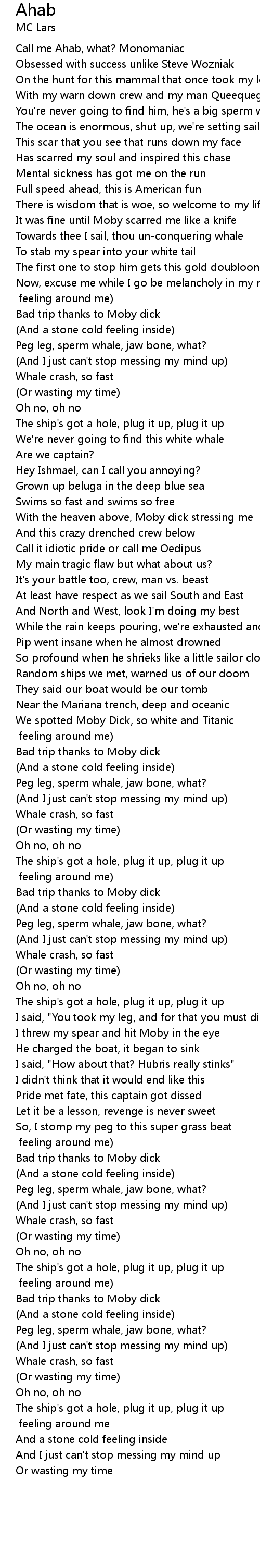 Call me Ahab, what? Monomaniac |