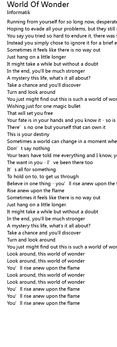 | Look around, this world of wonder | |