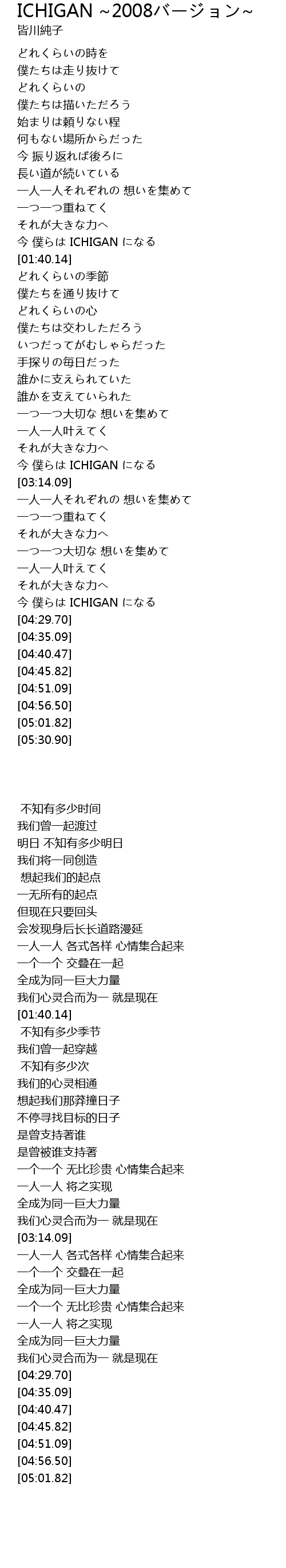 ICHIGAN 2008 Lyrics