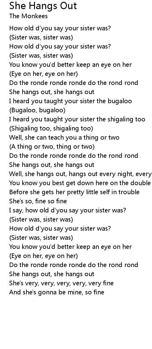 She hangs out, she hangs out |
