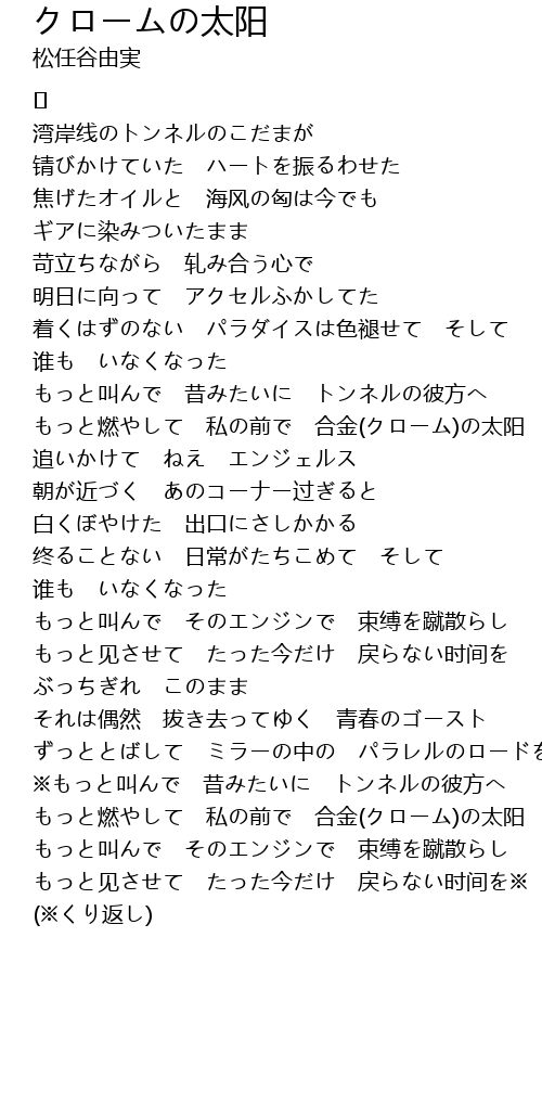| もっと燃やして 私の前で 合金(クローム)の太阳 | |